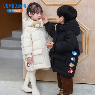 康博女童羽绒服男童中长款宝宝可爱新款加厚保暖洋气小童冬装外套 优惠券:¥95元