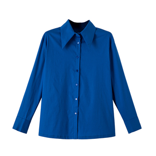 晚白2025年秋新款时尚显白蓝色休闲翻领吸睛减龄韩系衬衫女 优惠券:¥0元