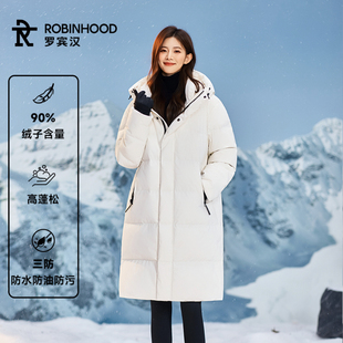 罗宾汉三防羽绒服女中长款连帽通勤保暖外套 优惠券:¥1000元